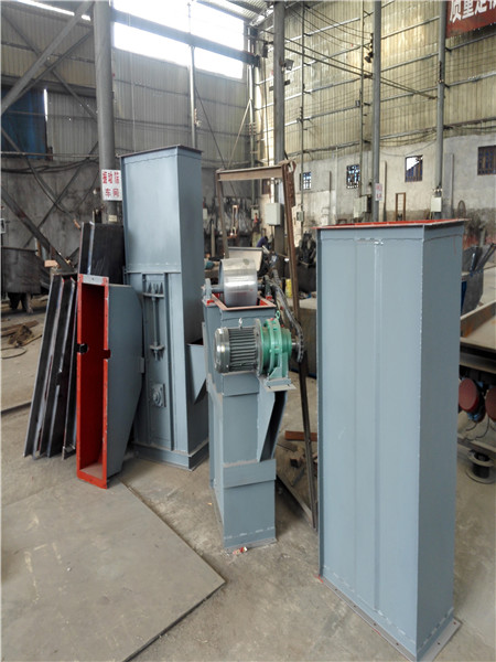 斗式提升機(jī)的料斗和牽引構(gòu)件等行走部分以及提升機(jī)頭輪和尾輪等均安置在提升機(jī)的封閉罩殼內(nèi),而驅(qū)動裝置與提升機(jī)頭輪相連,緊張裝置與尾輪相連,當(dāng)物料從提升機(jī)的底部進(jìn)入時,牽引構(gòu)件動作使一系列料斗向上提升至頭部,并在該處進(jìn)行卸載,從而完成物料垂直向上輸送的要求。
