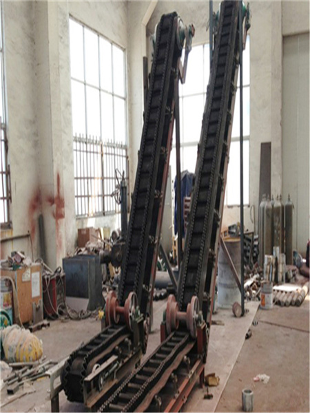 擋邊帶式輸送機(jī)其結(jié)構(gòu)是在平行橡膠運(yùn)輸帶兩側(cè)黏上可自由伸縮的橡膠波形式的裙邊,在裙邊之間又粘有一定強(qiáng)度和彈性的橫隔板組成匣型斗,使物料在斗中進(jìn)行連續(xù)輸送。擋邊帶式輸送機(jī)可廣泛用于煤炭、糧食、建材、化工、水電、和冶金等部門,在環(huán)境濕度為19°-+40°范圍內(nèi),輸送堆積比重為0.5-2.5t/m3的各種散裝物料。對于輸送有特殊要求的,如:高溫、酸、堿、油類物質(zhì)或有機(jī)溶劑等成分物料,采用特殊的擋邊輸送帶。