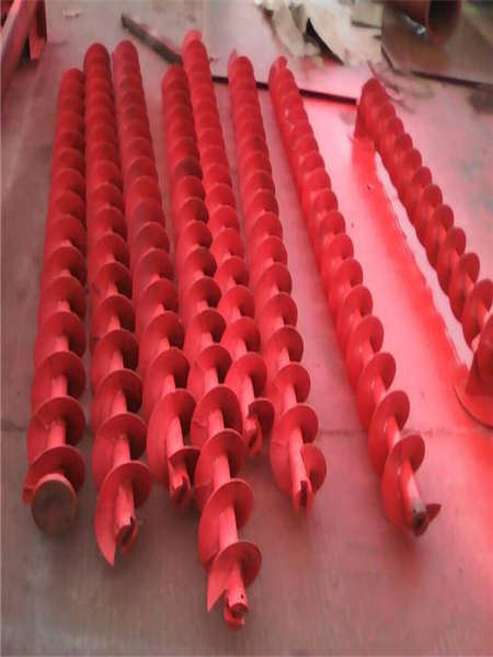 (1)螺旋輸送機(jī)的螺旋葉片有實(shí)體螺旋面型、帶式螺旋面型及葉片螺旋面型三種。實(shí)體螺旋面稱為s制法,其螺旋節(jié)距GX型為葉片直徑的0.8倍,LS型螺旋輸送機(jī)適用于輸送粉狀和粒狀物料。帶式螺旋面又稱D制法,其螺旋節(jié)距與螺旋葉片直徑相同,適用于輸送粉狀及小塊物料。葉片式螺旋面應(yīng)用較少,主要用于輸送粘度較大和可壓縮性物料,在輸送過程中,同時(shí)完成攪拌、混合等工序,其螺旋節(jié)距約為螺旋葉片直徑的1.2倍。