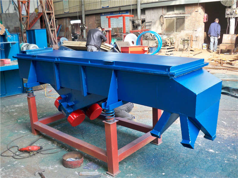 直線振動篩采用雙振動電機驅動,當兩臺振動電機做同步、反向旋轉時,其偏心塊所產(chǎn)生的激振力在平行于電機軸線的方向相互抵消,在垂直于電機軸的方向疊為一合力,因此篩機的運動軌跡為一直線。其兩電機軸相對篩面有一傾角,在激振力和物料自重力的合力作用下,物料在篩面上被拋起跳躍式向前作直線運動,從而達到對物料進行篩選和分級的目的??捎糜诹魉€中實現(xiàn)自動化作業(yè)。具有能耗低、效率高、結構簡單、易維修、全封閉結構無粉塵溢散的特點。篩分目數(shù)400目,可篩分出7種不同粒度的物料。