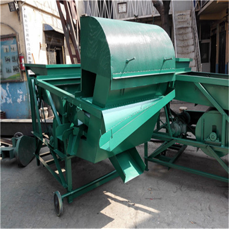該清選機(jī)含有三層篩網(wǎng),工作時(shí)先經(jīng)過一層篩, 把原糧中比所需篩選物大的的雜質(zhì)、葉子、泥塊等雜物分離出來,再經(jīng)過二層篩網(wǎng)經(jīng)好糧分離開,剩下三層篩網(wǎng)所篩物料即是比好糧小或碎的一些其他雜物。注:再好糧篩出過程中,經(jīng)過機(jī)器本身自帶風(fēng)機(jī)風(fēng)選出比較輕的灰塵雜物,好糧由前端的出來口排出。